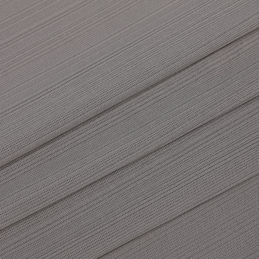 Det ribbete komfortable silke-innerøyet strikkede stoffer som er egnet for kvinneklær, bruker høykvalitets silke som hovedstoffkomponent, noe som sikrer produktets gode komfort og pusteevne. Det strikkede stoffet er laget av 99.999% rent silkemateriale. Med sin letthet, mykhet og god fuktighetsabsorpsjon og svettefunksjon, gir den brukeren en behagelig opplevelse av allvær, regulerer effektivt kroppstemperatur og holder huden tørr. Når det gjelder håndverk, vedtar produktet en unik strikketeknologi. Gjennom den nøyaktige vevingsprosessen forbedres elastisiteten og utvinningen av stoffet, slik at det kan passe den kvinnelige kroppskurven nøye mens den gir nødvendig støtte og formende effekt. Utformingen av den ribbede strukturen forbedrer ikke bare undertøyets holdbarhet og stabilitet, men gir også stoffet en delikat og avansert tekstur, noe som gjør undertøyet mer delikat visuelt og mer delikat å ta på.