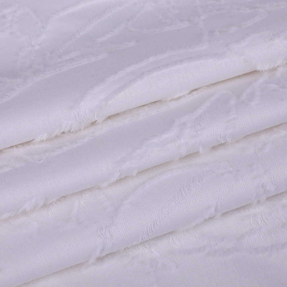 Jacquard Trim tråd pustende luksus dame strikket stoff, blandet med 90% bomull av høy kvalitet og 10% fin silke. Dette unike forholdet er designet for å optimalisere ytelsen til stoffet, sikre god pusteevne og fuktighetsabsorpsjon, og gi stoffet et unikt luksuriøst preg. I stoffdesignet bruker vi en fin Jacquard Edge -prosess og integrerer smart komplekse mønstre i stoffet gjennom manuelle ferdigheter. Dette designet forbedrer ikke bare den visuelle effekten av stoffet, men gir den også unik kunstnerisk verdi og estetisk betydning. Samtidig får bruken av en strikket struktur at stoffet har god elastisitet og bedring, noe som perfekt kan passe til kroppsformen og dekke kvinners doble behov for komfort og skjønnhet. Når det gjelder ytelse, fungerer dette stoffet bra. Tilsetningen av bomullsfiber gjør at stoffet har god fuktighetsabsorpsjon og svetteytelse, noe som kan holde huden tørr og behagelig selv i miljøer med høy temperatur. Den delikate glansen av silke gir et snev av eleganse og luksus til stoffet og forbedrer den generelle tekstur. I tillegg har stoffet også god slitestyrke og rynkemotstand, som tåler testen av daglig slitasje og vasking, og opprettholder den originale glansen og teksturen til stoffet.